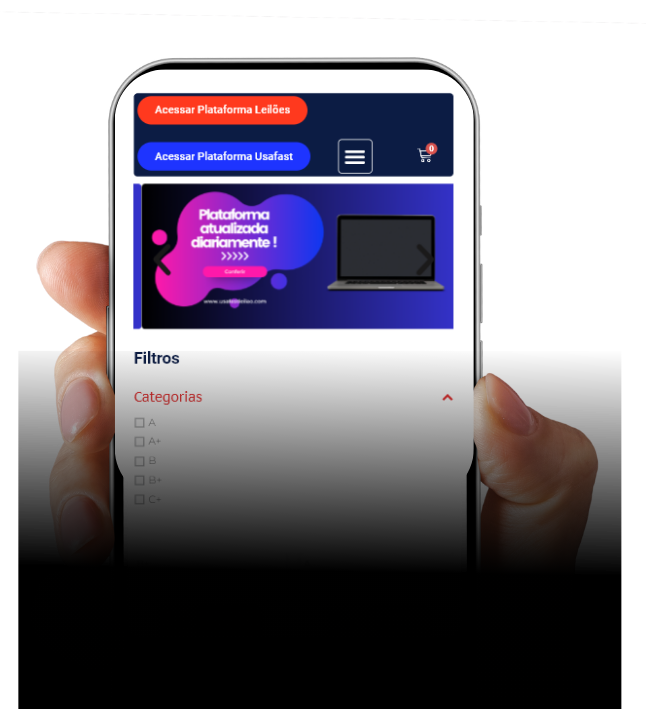 Receba um passo a passo te mostrando as 3 formas de acessar leilões americanos, japoneses e canadenses, com produtos de extrema qualidade e menores preços do planeta!